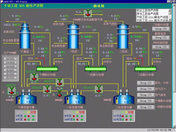 Conversion process control display (6) Yunnan Tin Company Limited projectThe DCS of Yunnan Tin Company smelter’s smelting system and waste heat power station is YOKOGAWA CENTUM CS 1000 system, which is a production control system for small and medium-sized process control. This system is featured by reliability, universality and personal computer environment openness etc., thus facilitating system configuration and operation control.According to the whole-plant process control requirements, smelting DCS consists of two independent CENTUM CS1000 systems: Ausmelt system and YTCL system. Ausmelt system is mainly to monitor and control Ausmelt furnace part, while YTCL system is to monitor and control the auxiliary part of Ausmelt furnace and other process flows. Shielded cables are used to connect the I/O card of the two systems for realizing point-to-point data communication.